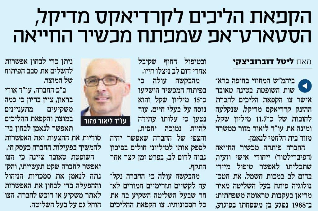 - צו הקפאת הליכים לחברה המפתחת מוצר מציל חיים