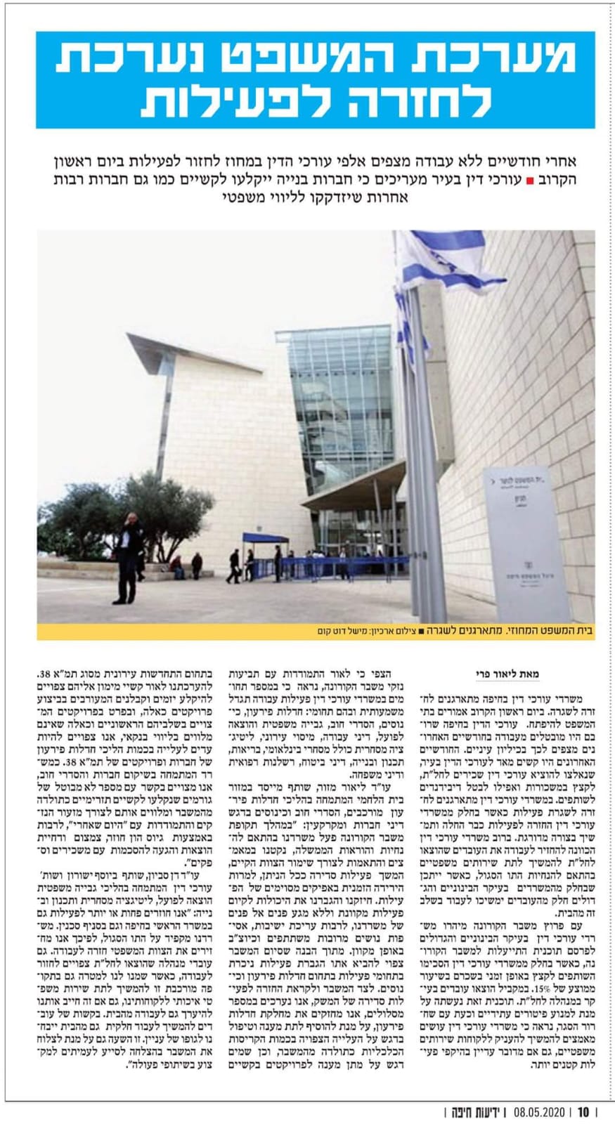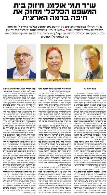 - הקהילה המשפטית מברכת על הרחבת בית המשפט הכלכלי בחיפה