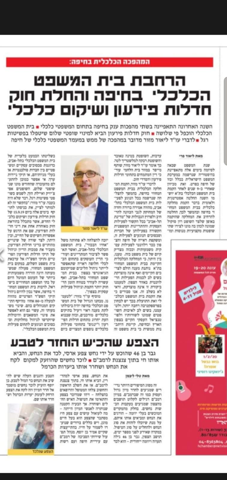 - הרחבת בית המשפט הכלכלי בחיפה והחלת חוק חדלות פירעון ושיקום הכלכלי