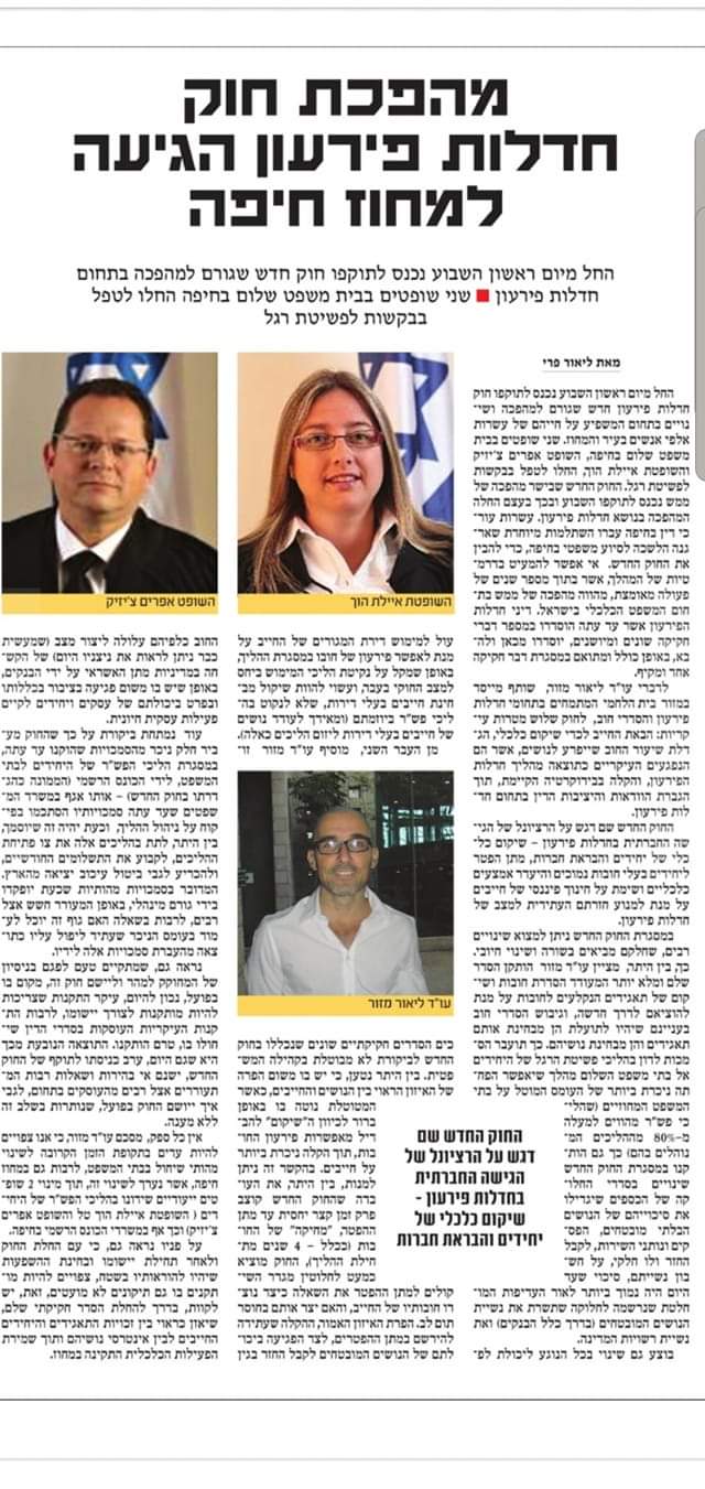 - מהפכת חוק חדלות הפירעון הגיע למחוז חיפה