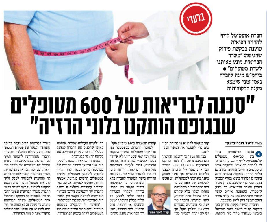 - סכנה לבריאות של 600 מטופלים שבגופם הותקנו בלוני הרזיה