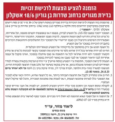 הזמנה להציע הצעות לרכישת זכויות בדירת מגורים באשקלון